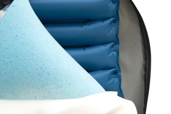 This advanced Protekt Seat Relief cushion is a dynamic therapeutic system that combines the latest in gel-infused memory foam technology with continuous alternating air pressure. It is specifically engineered to provide superior, customizable pressure redistribution for individuals at high risk for skin breakdown, delivering long-lasting comfort and high-level stability in a fully portable package.