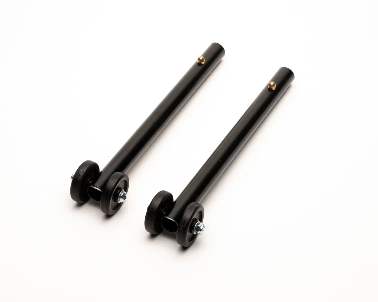 A pair of universal straight anti-tippers with wheels for manual wheelchairs. Comparable to part STDS833N by Drive Medical. Fits Silver Sport I & II.