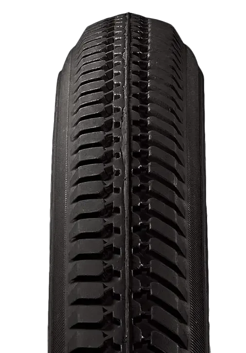 The iMPAC pneumatic tire features a R-124 street tread general all-purpose pattern which aims to provide a smooth ride with moderate grip on regular pavement. It is a black non-marking tire.