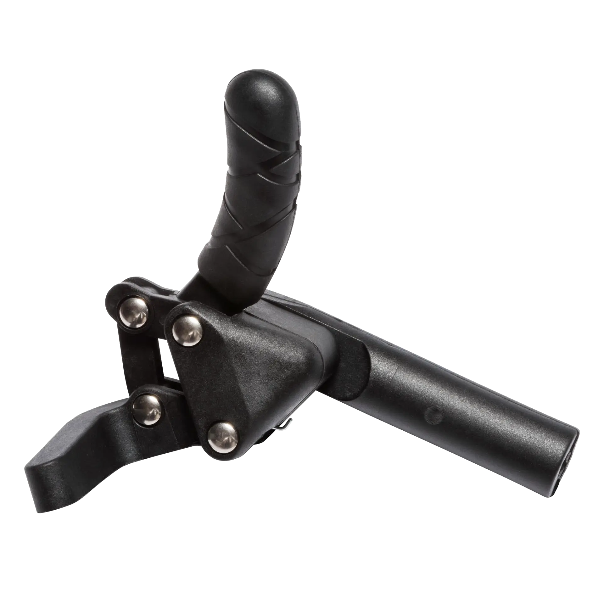 A composite push-to-lock wheel lock for manual wheelchairs. For use on the left side(as you are sitting) of a manual wheelchair. The mounting clamp is sold separately.