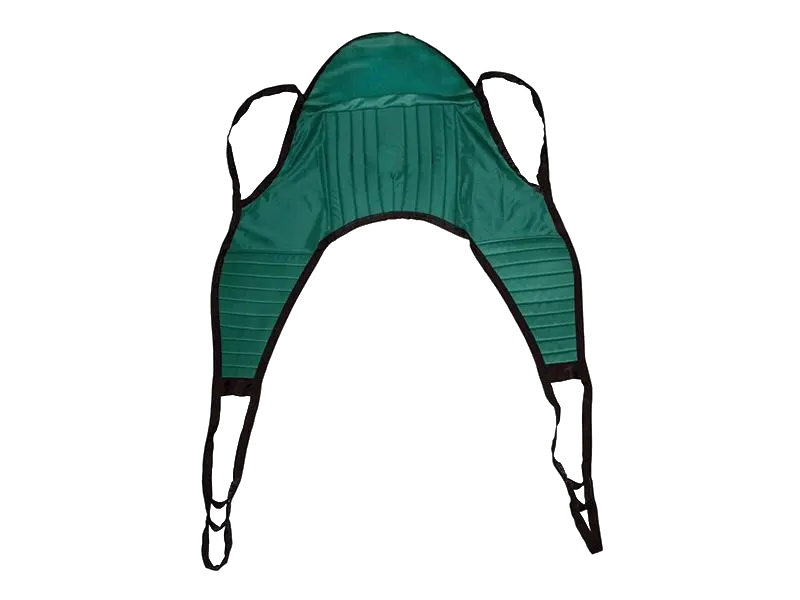This padded divided leg sling by Proactive Medical is thoughtfully designed to provide superior security and gentle comfort for users requiring full-body support and head stabilization during transfers.